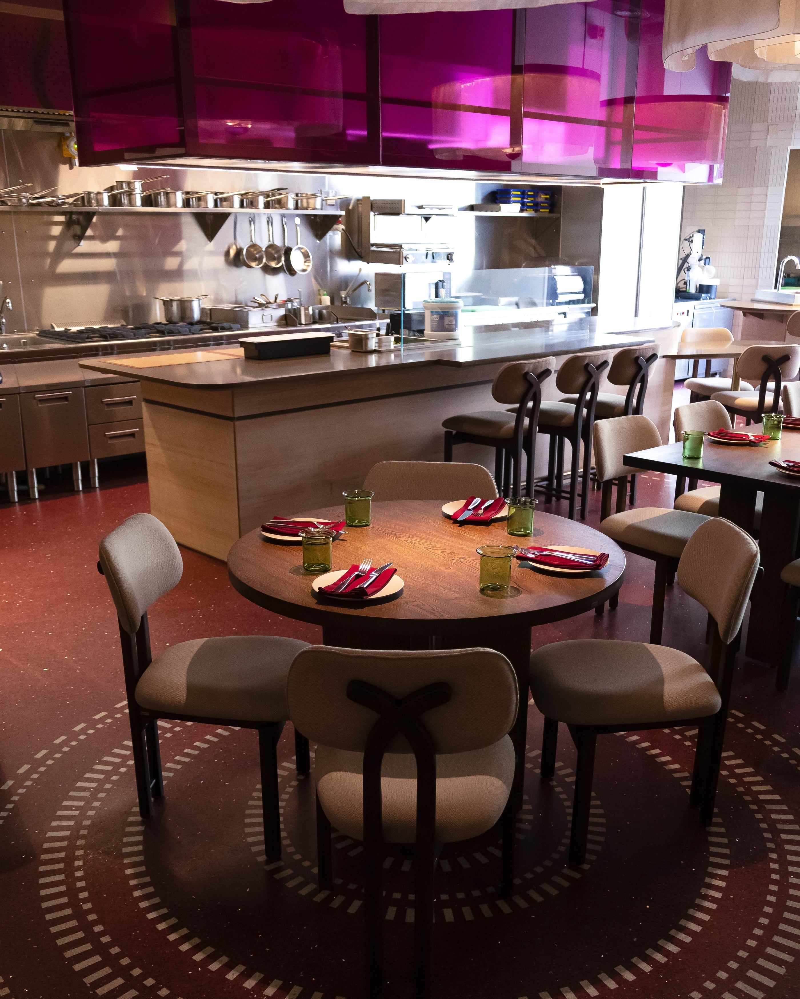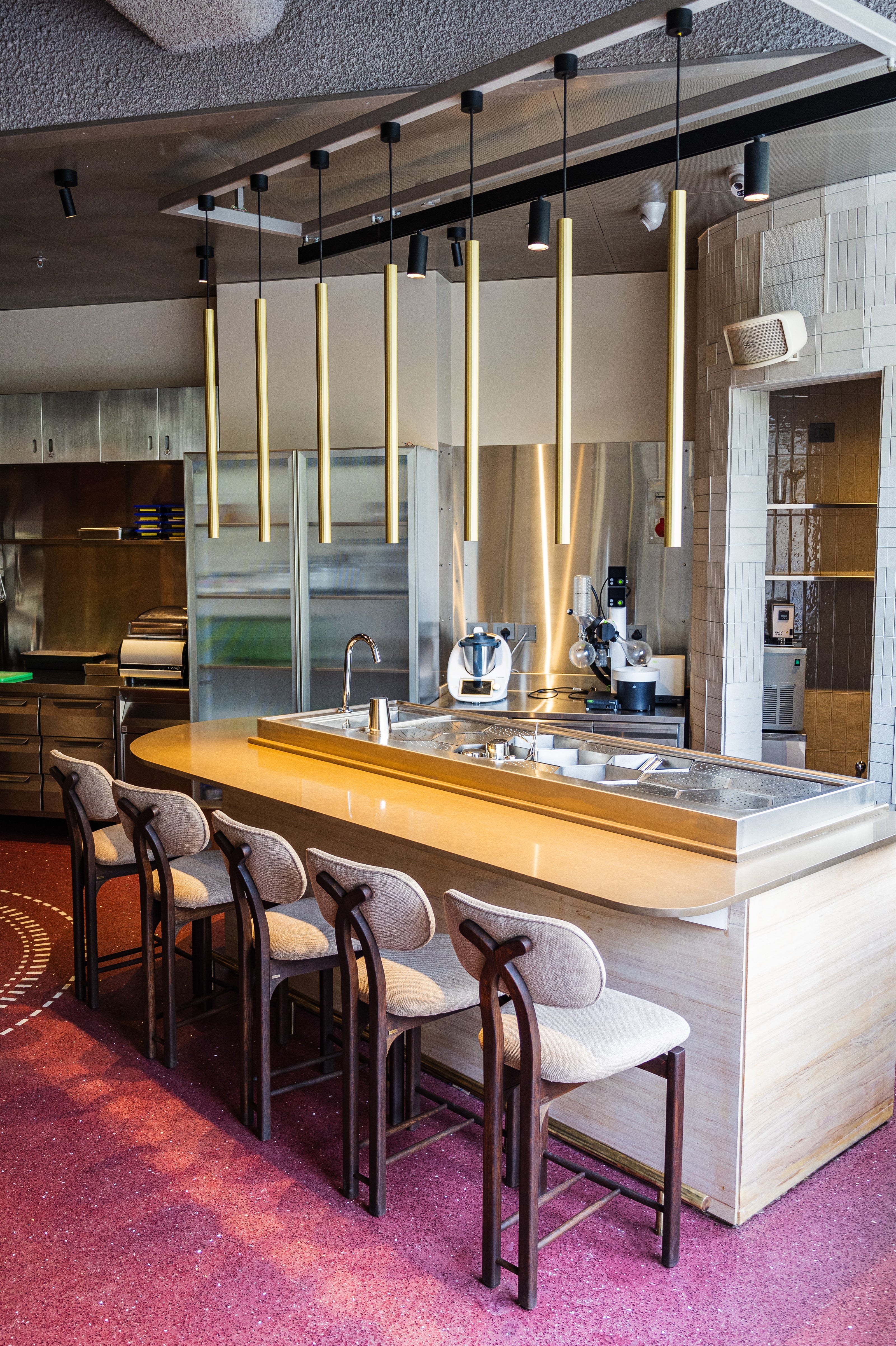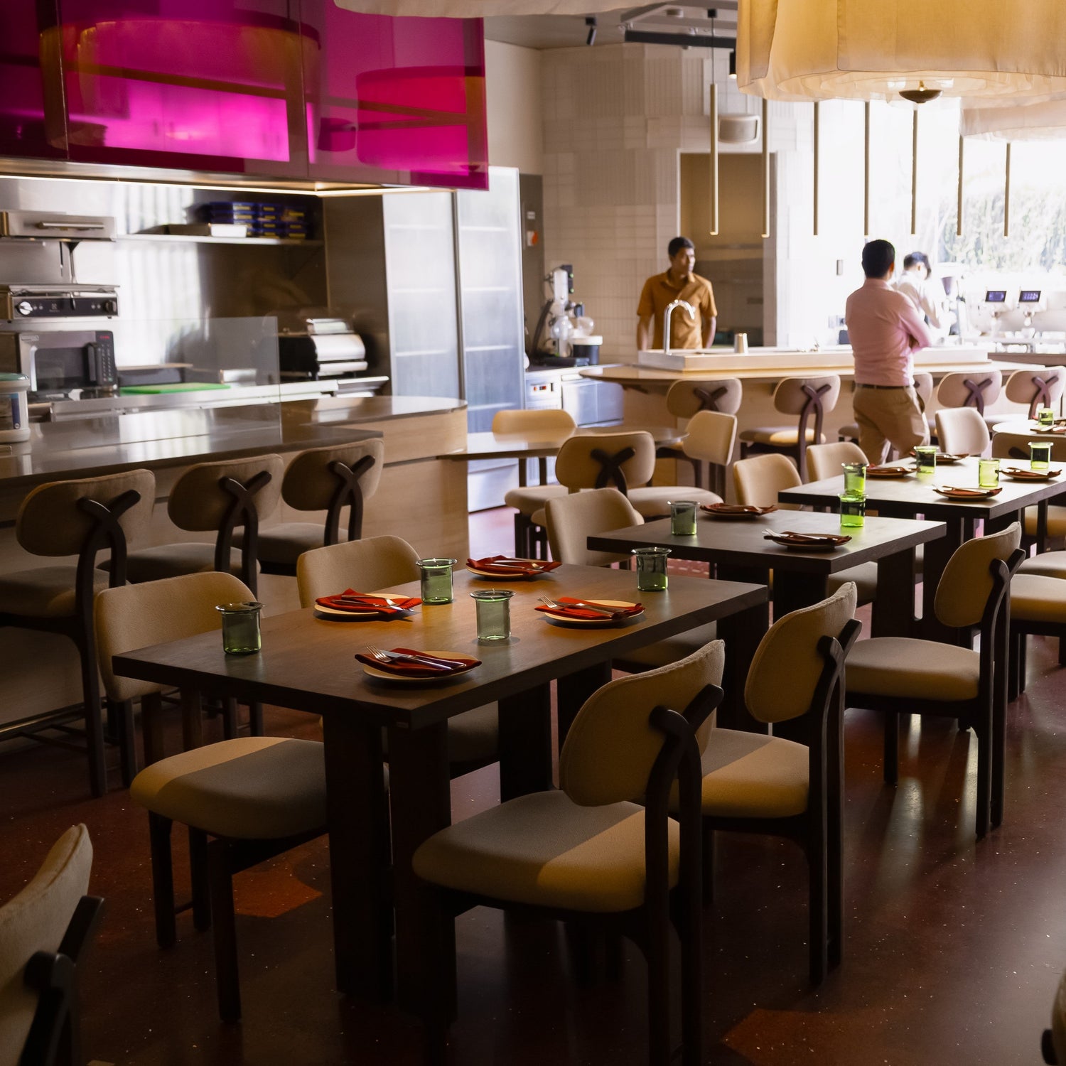 Nestled in Gurugram, Anjeer is more than a restaurant—it’s a contemporary rendition of Indian culinary heritage, where textures, colors, and spaces softly converge. Guests are embraced by introspective design elements: whisper-thin kantha-embroidered glass panels, layered terrazzo ripples, and warm textiles that comfort without ornament. The open kitchen bridges the boundary between food and guest, transforming each meal into an intimate, sensory moment.