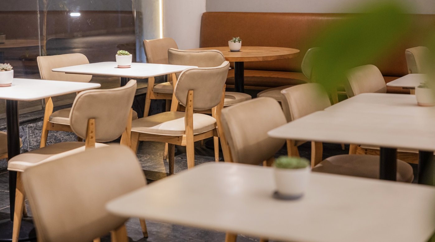 Solid Bench designed furniture for Café Però around its minimalist, chic aesthetic that emphasizes calmness, elegance, and natural elements. Functional, comfortable chairs and built-in sofas along the walls create a cozy, work-friendly setting, while wooden tables and a sleek bar counter table complete the space. Together, these elements enhance comfort and functionality, perfectly aligning with the café’s modern vision.