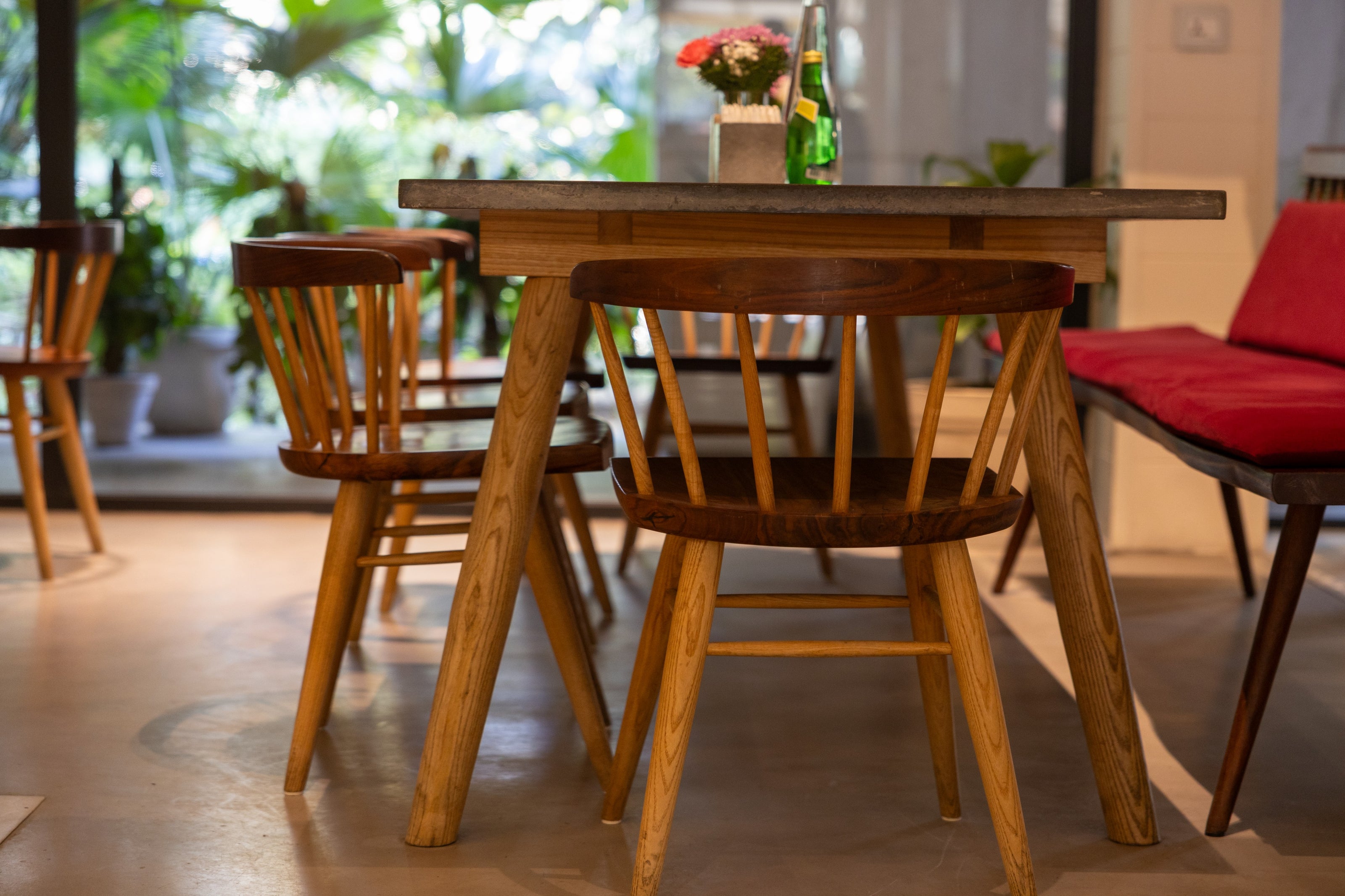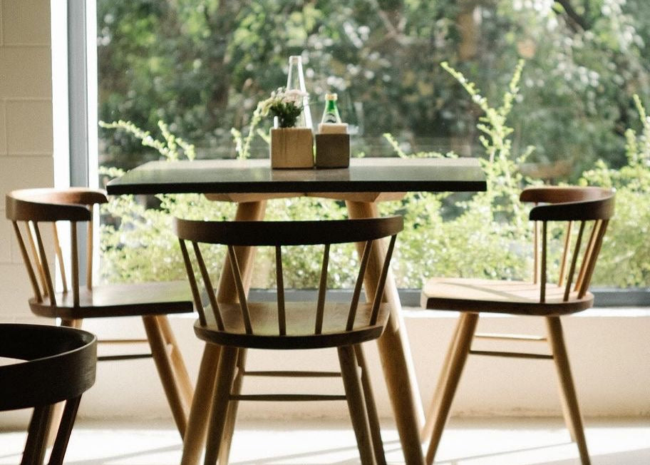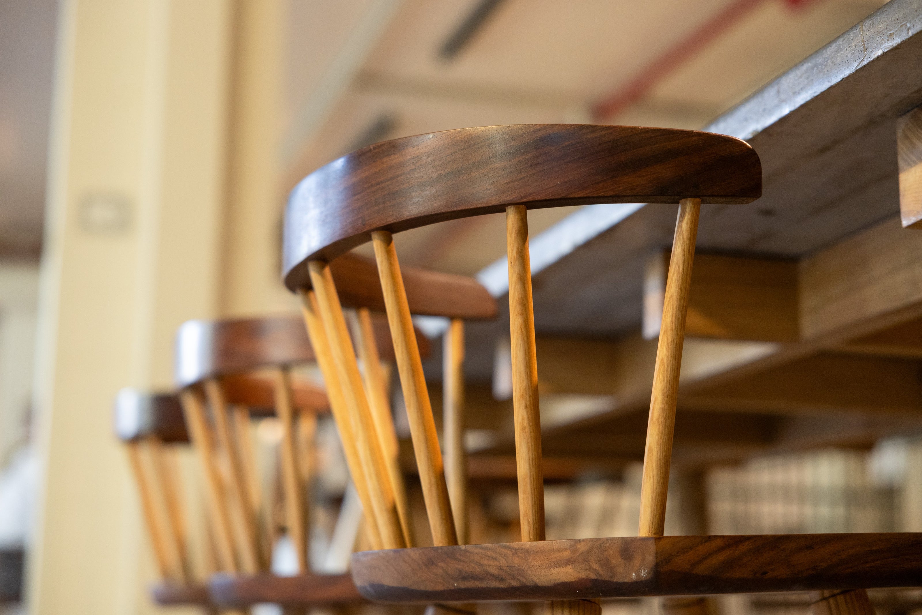To match Fig’s serene spirit, Solid Bench created pieces that breathe with the space, grounding it with natural textures and quiet design. Inspired by Japanese minimalism, our low-back Windsor chairs with their distinctive rosewood-and-ash spindles have become synonymous with Fig. Benches draw from Nakashima’s timeless architecture, while concrete tables anchor the space, inviting slow mornings and unhurried conversations.