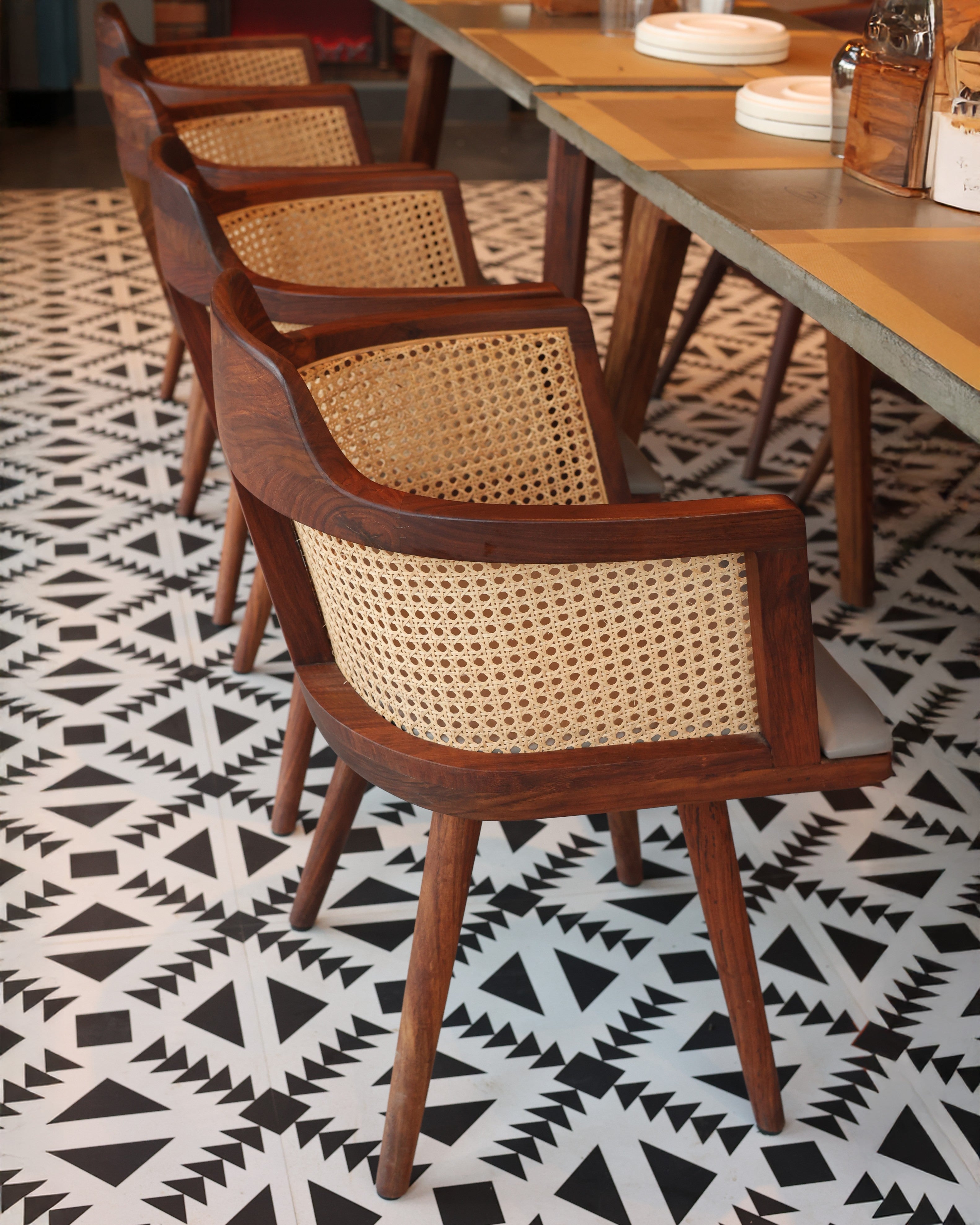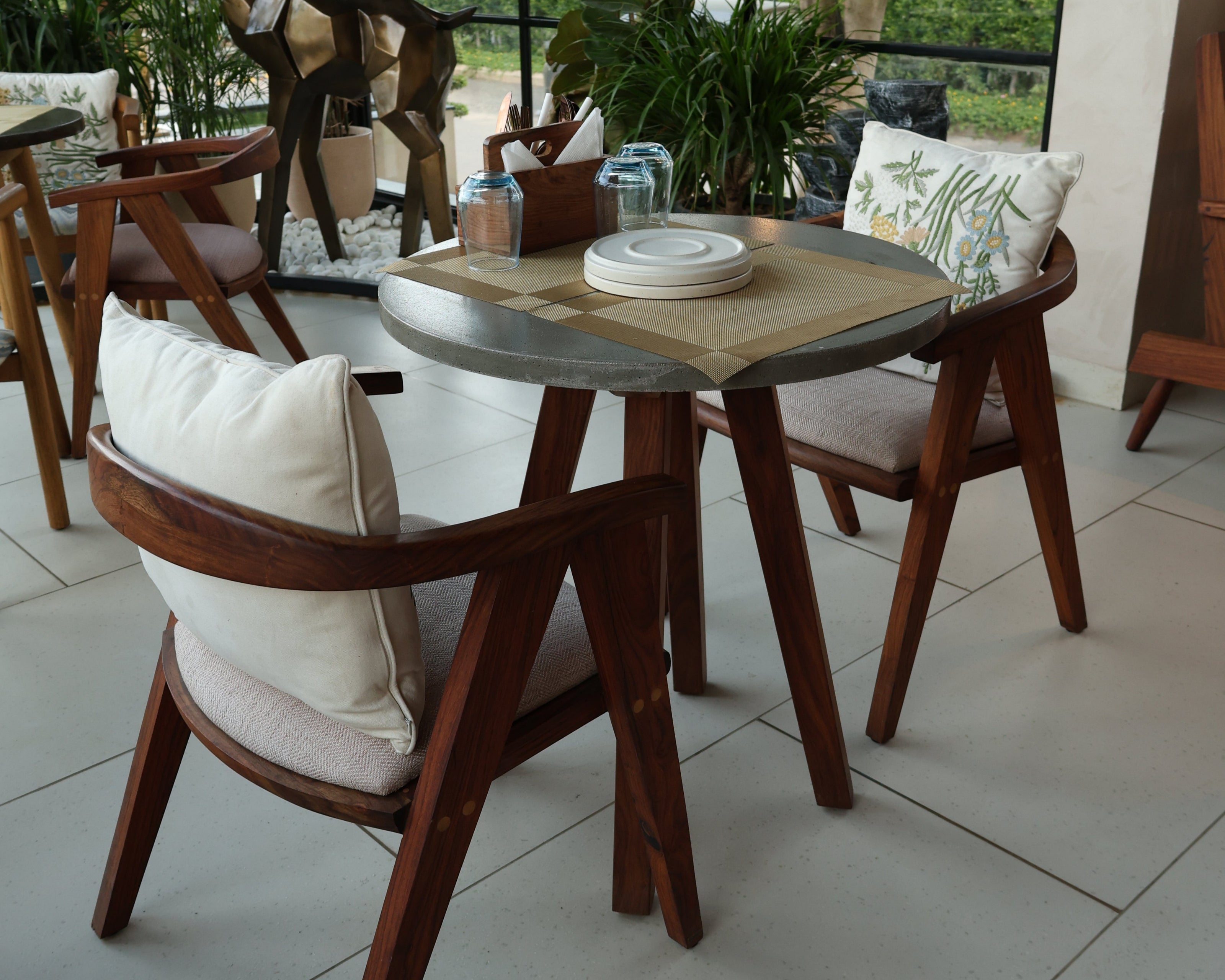 Solid Bench extended this sensibility into furniture that feels organic and fluid. Concrete tables, distinctive chairs including rattan-woven seating and lounge arrangements create a relaxed rhythm throughout the space. Across Flora’s two cafés, the interplay of ash and rosewood ties the design together, integrating beautifully with plants and light to reinforce its calm, garden-like identity as a calm, nurturing haven.