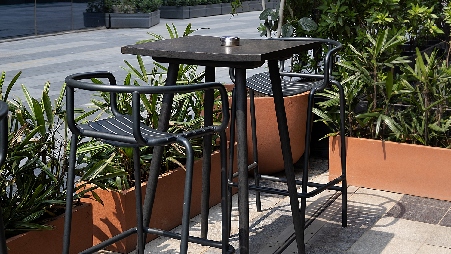 Outdoors, burnt cedar high tables continue the design language, seamlessly extending Mjol’s spirit into the open air and completing a harmonious experience across the café.