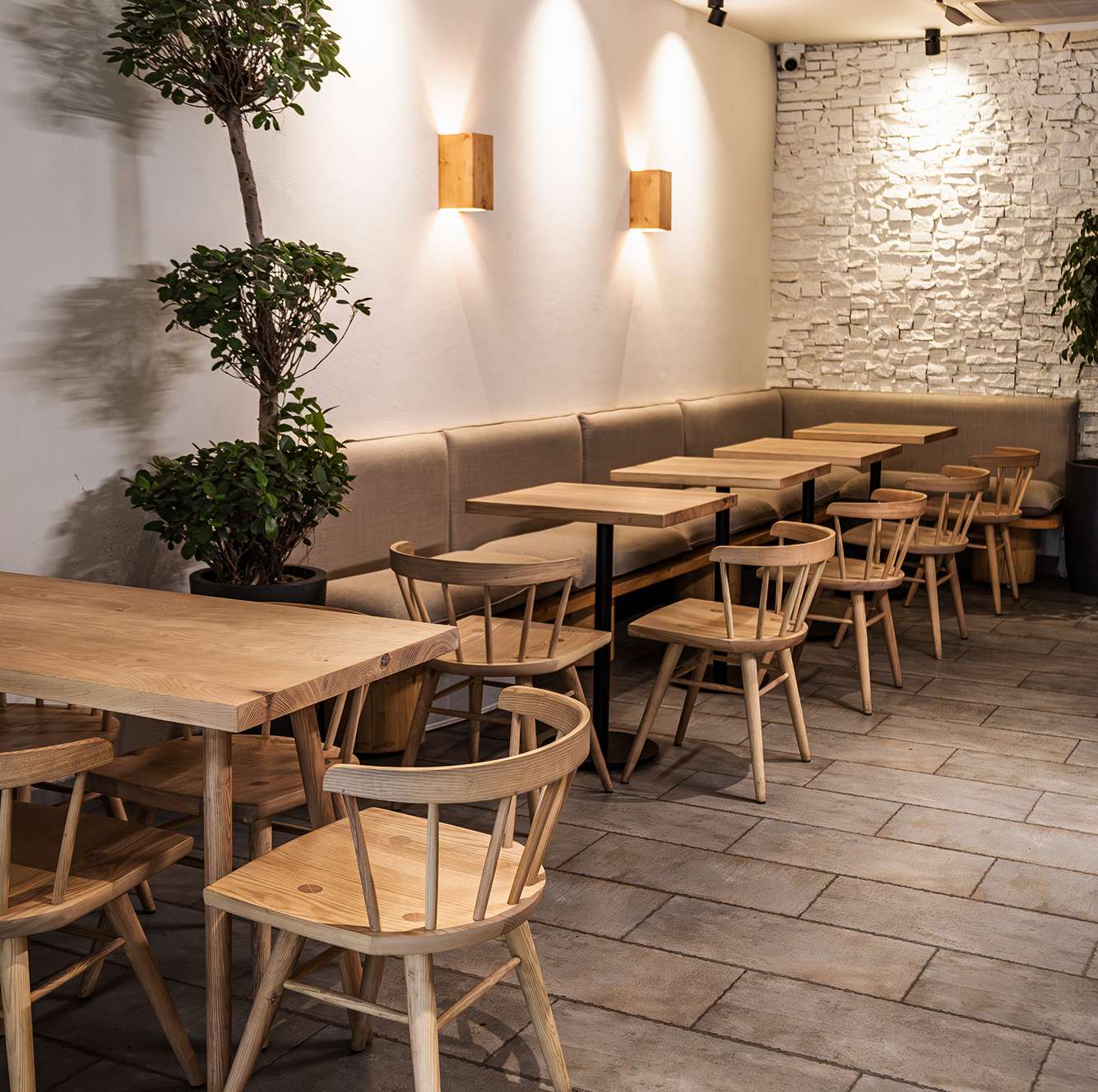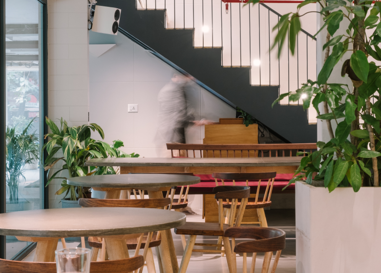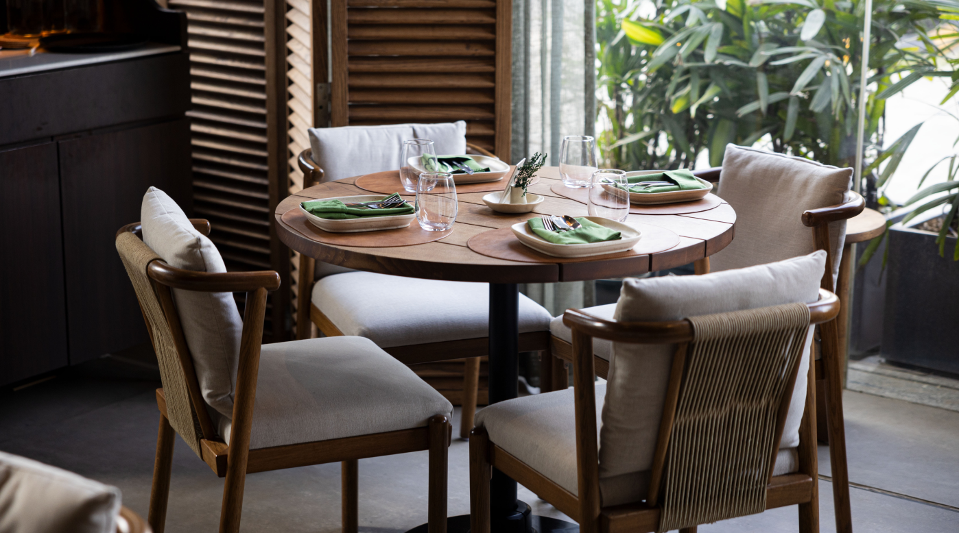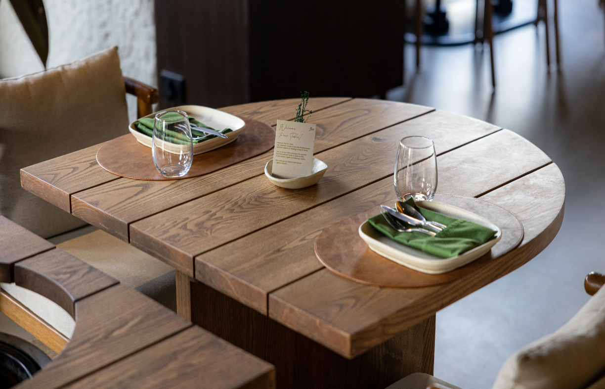 Understanding the brandās narrative, we developed a design language that echoes its aesthetic - natural materials, organic forms, and a sense of togetherness. Using sustainably sourced wood and traditional joinery techniques, we crafted elegant tables, a bar counter along the ledge, and a long community table seamlessly integrated with plants to foster connection and warmth.