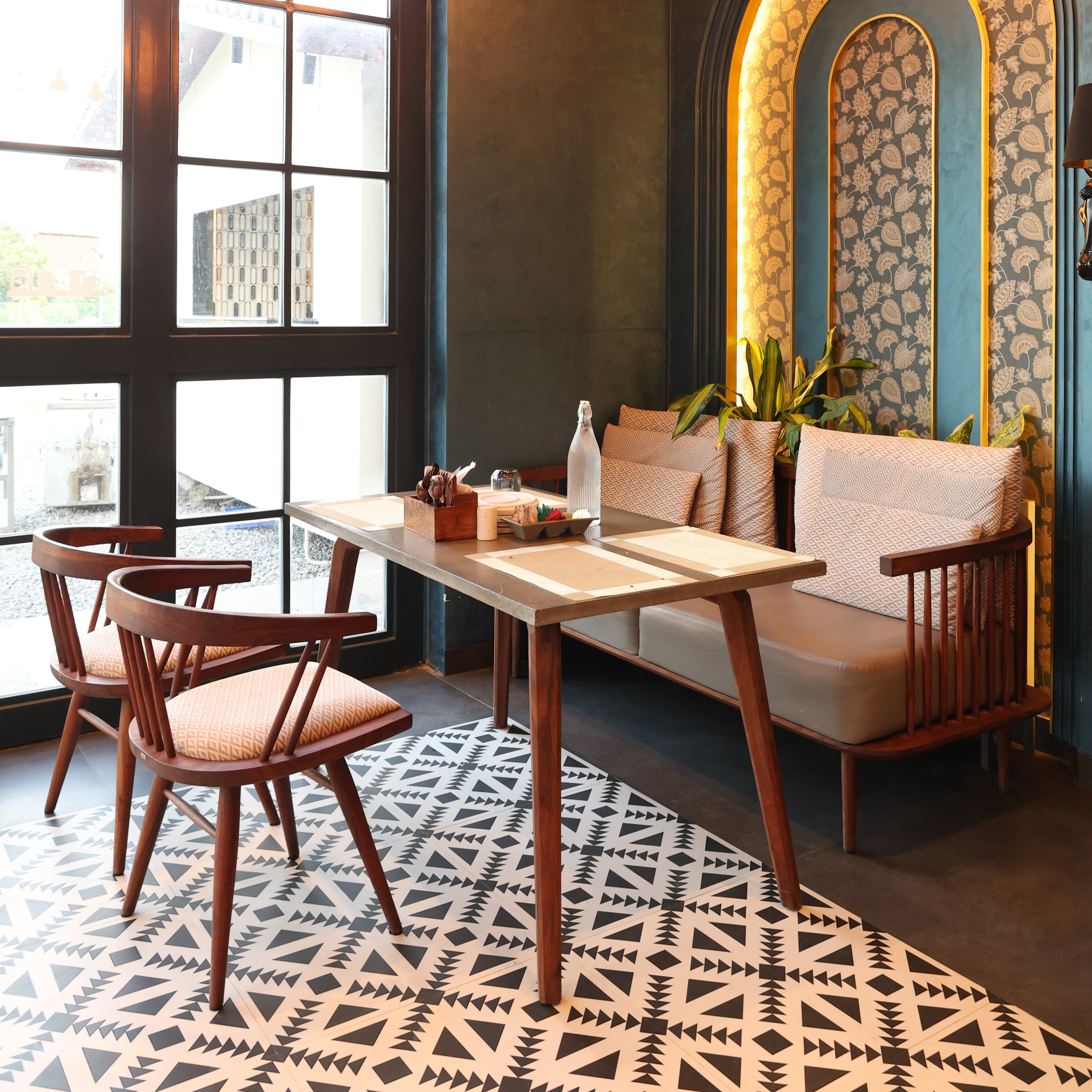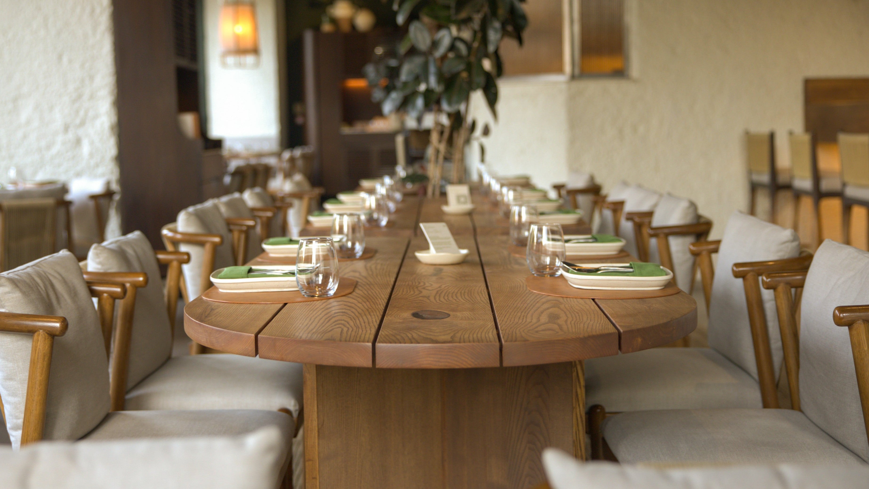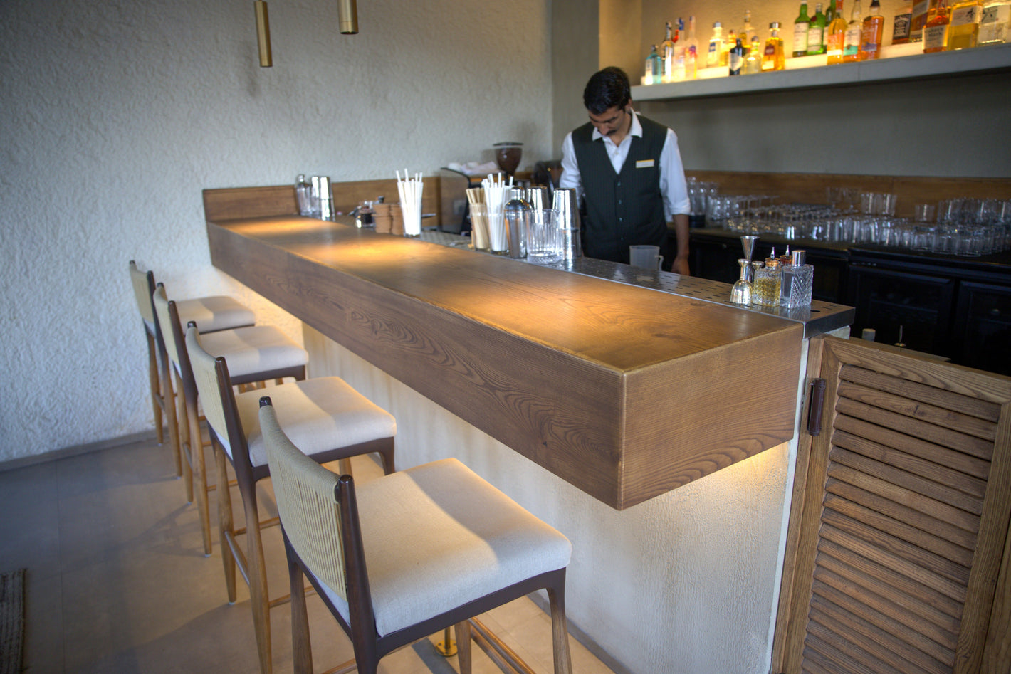 Understanding the brandās narrative, we developed a design language that echoes its aesthetic - natural materials, organic forms, and a sense of togetherness. Using sustainably sourced wood and traditional joinery techniques, we crafted elegant tables, a bar counter along the ledge, and a long community table seamlessly integrated with plants to foster connection and warmth.